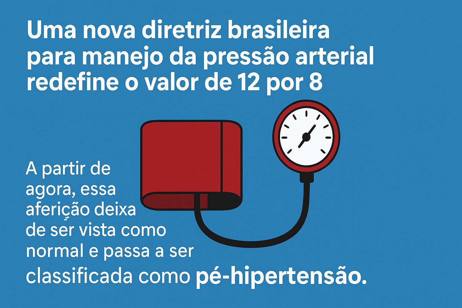 Durante muitos anos, o famoso “12 por 8” (120 mmHg × 80 mmHg) foi sinônimo de pressão normal e saudável. Mas essa ideia mudou: a nova Diretriz Brasileira de Hipertensão Arterial 2025 passa a classificar esse valor como pré-hipertensão, e não mais como normal.