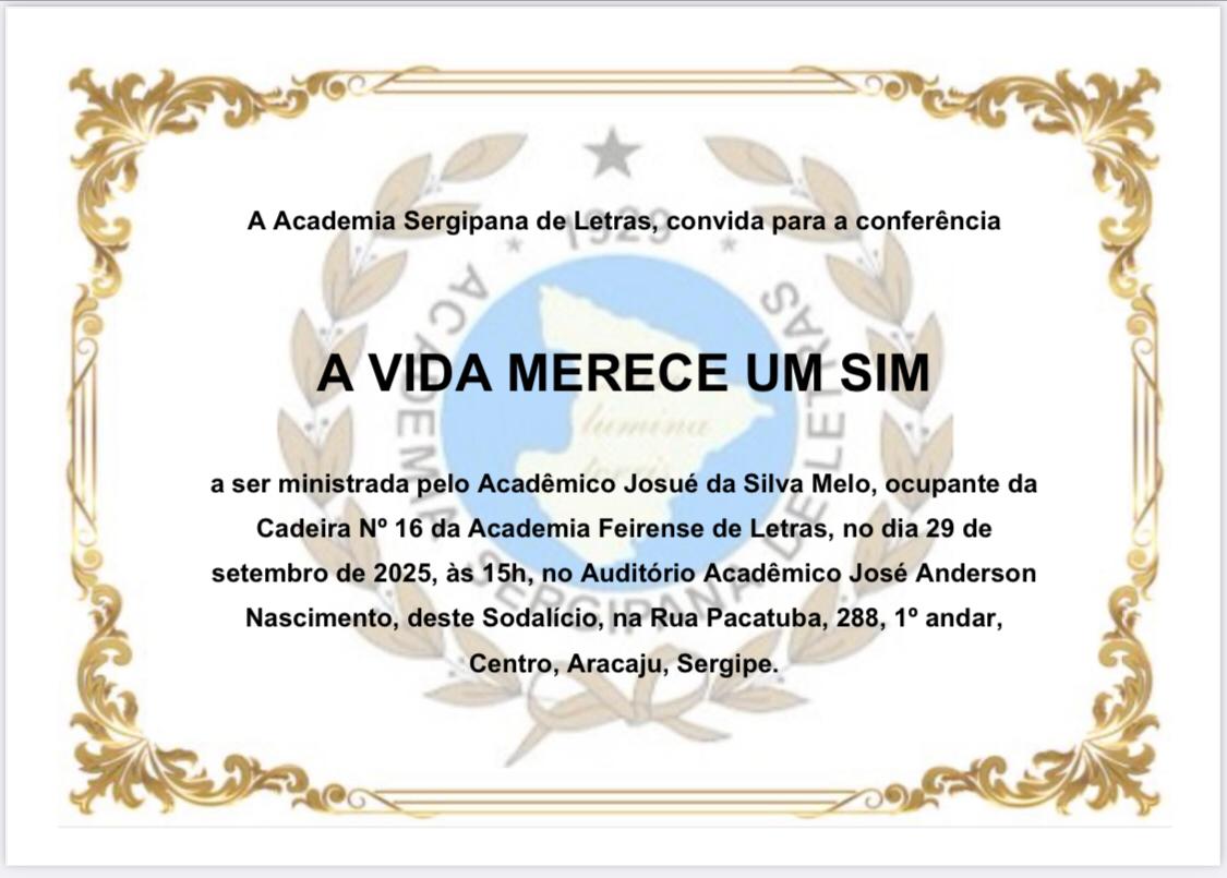 Nesta segunda-feira, 29, ele estará em Aracaju conforme o convite que segue: